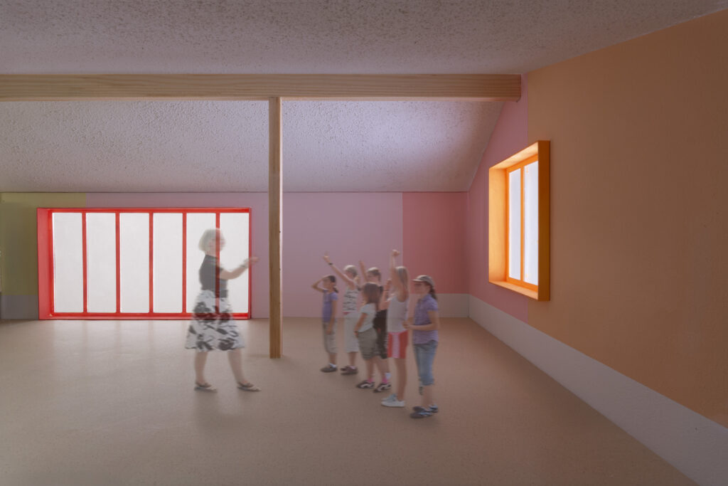 In einer fünfzehnwöchigen Auseinandersetzung wurde ein Farbkonzept entwickelt, das dem Leitsatz „Ups, Glacé isch a Bode gheit” folgt. Dabei wurde am Modell ein Gefühl für Farben, Oberflächen und ihre Wirkung entwickelt. Die Dramaturgie des Konzepts gliedert sich in drei Teile. Von der surrealen Träumerei des bevorstehenden Genusses über das konkrete Geschmackserlebnis bis hin zum Missgeschick, das den süßen Traum zerplatzen lässt.