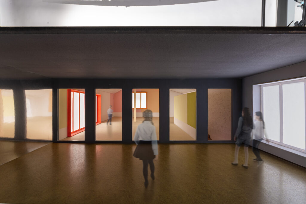 Over the course of fifteen weeks, a colour concept was developed based on the guiding principle ‘Oops, ice cream has fallen on the floor’. The model was used to develop a feel for colours, surfaces and their effects. The dramaturgy of the concept is divided into three parts. From the surreal reverie of impending enjoyment to the concrete taste experience to the mishap that shatters the sweet dream.
